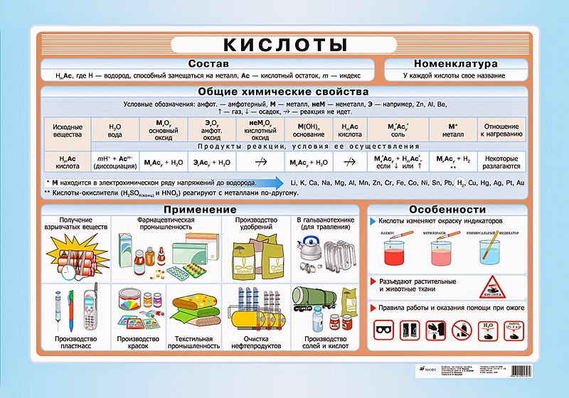Таблица Химические свойства кислот, солей и оснований (винил) 100х140см.